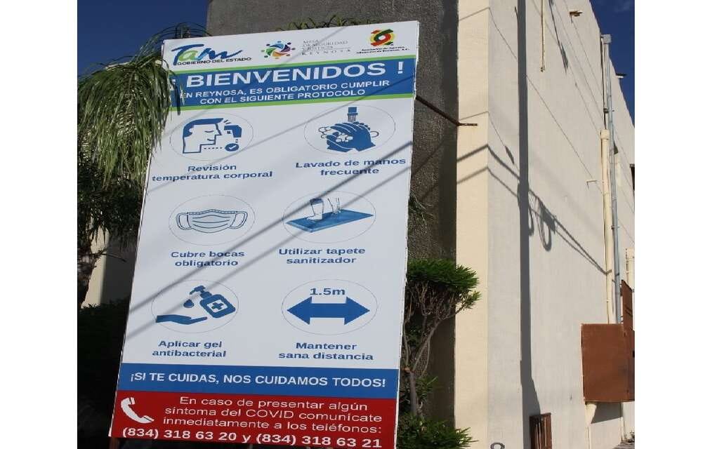 En la Avenida Miguel Alemán vialidad que accede a la Aduana Local y las casetas de peaje para cruzar al Valle de Texas, se han colocado en forma estratégica anuncios informativos, en los que se dan a conocer las medidas preventivas sanitarias que se deben seguir.