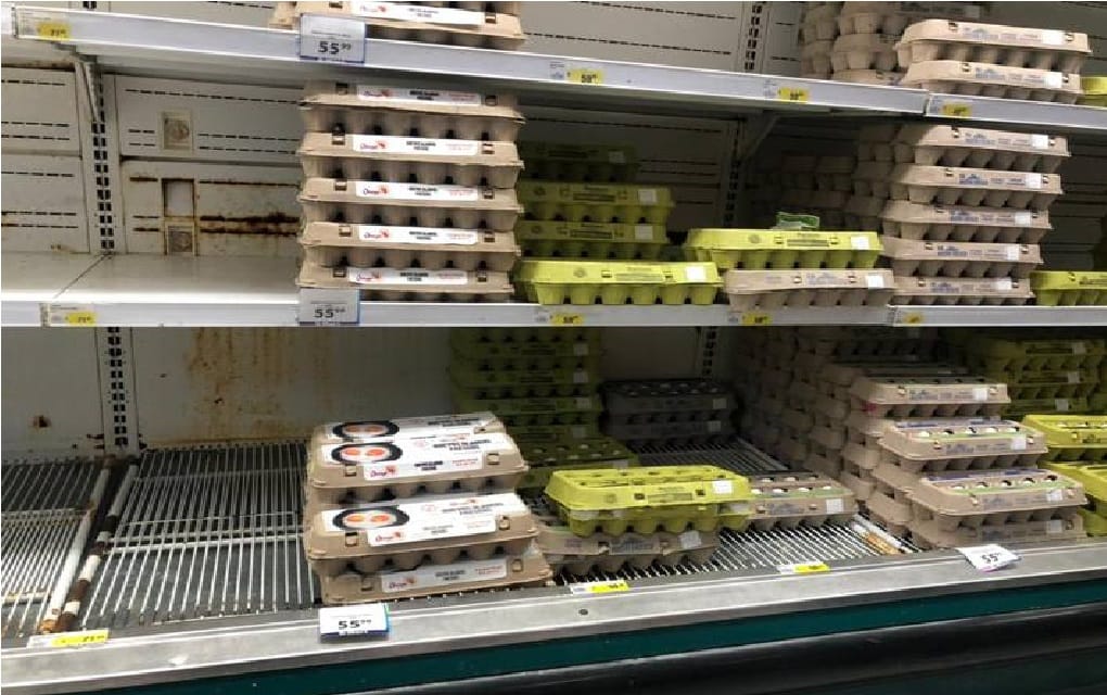 Reynosa.- Exhibidores de huevo semivacíos se han observado en los últimos días en diversos establecimientos de la zona fronteriza de Tamaulipas, evidenciando una escasez de este producto.