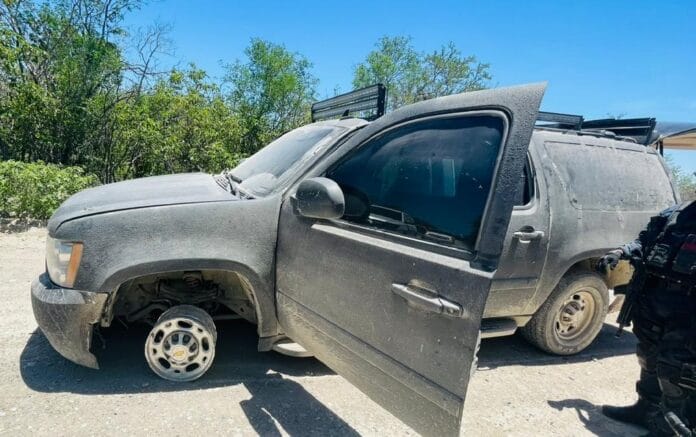 El reporte de Seguridad Pública indica que en Cruillas, se localizó una camioneta abandonada con impactos, ponchada y en el interior un chaleco táctico, cargadores y cartuchos.