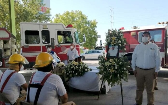 Reynosa, Tam.- Despiden con homenaje al ex director de Protección Civil, Marco Antonio Martínez Alvarado, al perder la batalla contra el COVID 19.