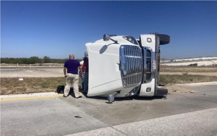 Nuevo Laredo, Tam.- La volcadura de un tractocamión con caja tipo tráiler se registró en la Autopista de la Carretera Nacional, en el tramo conocido como “La Pollera”, sin que se reportaran personas lesionadas.