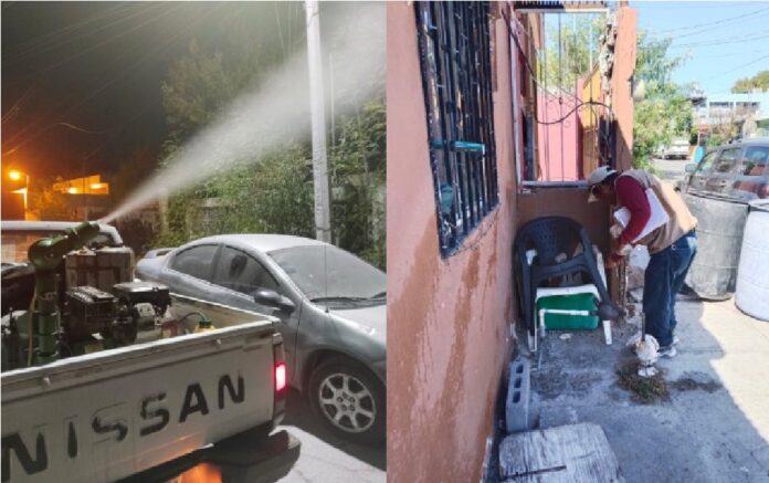 Nuevo Laredo, Tam.– El área de vectores de la Jurisdicción Sanitaria Número 5 mantiene de forma activa las labores de fumigación y control del mosquito transmisor del dengue en Nuevo Laredo, con el objetivo de cubrir la totalidad de colonias antes de que concluya el año.