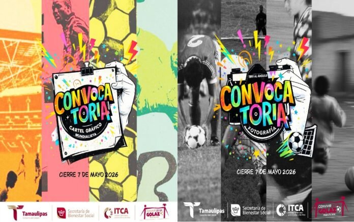 Ciudad Victoria, Tamaulipas.– En el marco del Mundial Social 2026 y con el objetivo de impulsar el desarrollo artístico en la entidad, el Gobierno del Estado de Tamaulipas, a través de la Secretaría de Bienestar Social y el Instituto Tamaulipeco para la Cultura y las Artes (ITCA), mantiene abiertas dos convocatorias dirigidas a artistas gráficos, ilustradores, fotógrafos y creadores visuales en general, como parte del programa “Convivir es un golazo”.