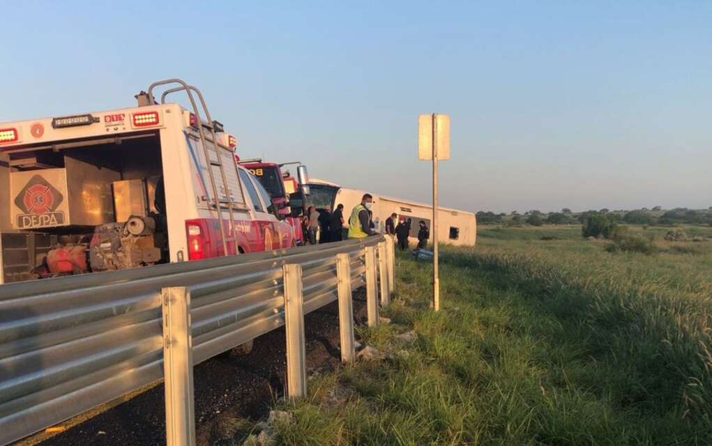 Se registran al menos 8 muertos y decenas de heridos. La volcadura se registró aproximadamente a las 4 de la mañana de este martes, 15 de junio sobre la carretera Reynosa-Monterrey sobre el caracol, pues se presume que había salido de Matamoros para dirigirse a Monterrey, Nuevo León.