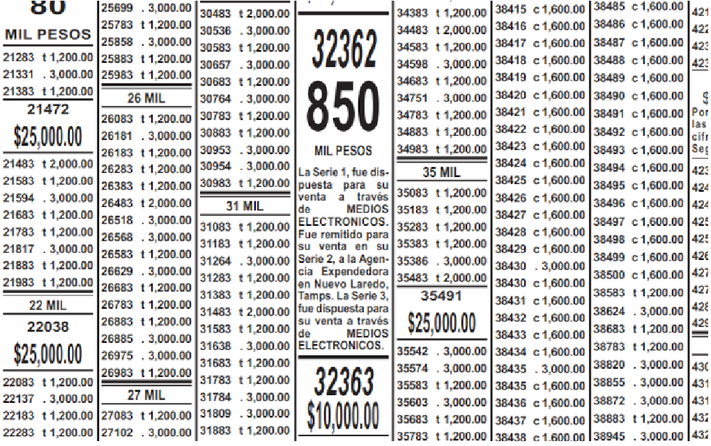 Por cada fracción o ‘cachito’, corresponden 42 mil 500 pesos. A esta frontera se asignó una de las tres series; las otras dos se pusieron a la venta en medios electrónicos.