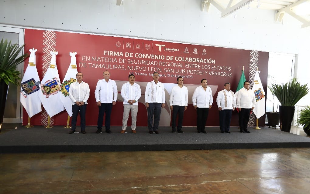 “El mensaje que estamos dando a las y los habitantes de nuestras cuatro entidades, es claro e inequívoco: estamos en una misma búsqueda para mejorar nuestros resultados en materia de seguridad y, para ello, estamos totalmente abiertos a la colaboración, a compartir experiencias exitosas y a plantear acciones concretas para agilizar, como se ha dicho aquí, el intercambio de información, de inteligencia y de todo lo referente a la prevención y la persecución de los delitos, en las cuatro entidades”, dijo el gobernador Américo Villarreal Anaya, tras la firma del convenio con sus homólogos Ricardo Gallardo Cardona, de San Luis Potosí; Cuitláhuac García Jiménez, de Veracruz, y el secretario general de Nuevo León, Javier Navarro Velasco.