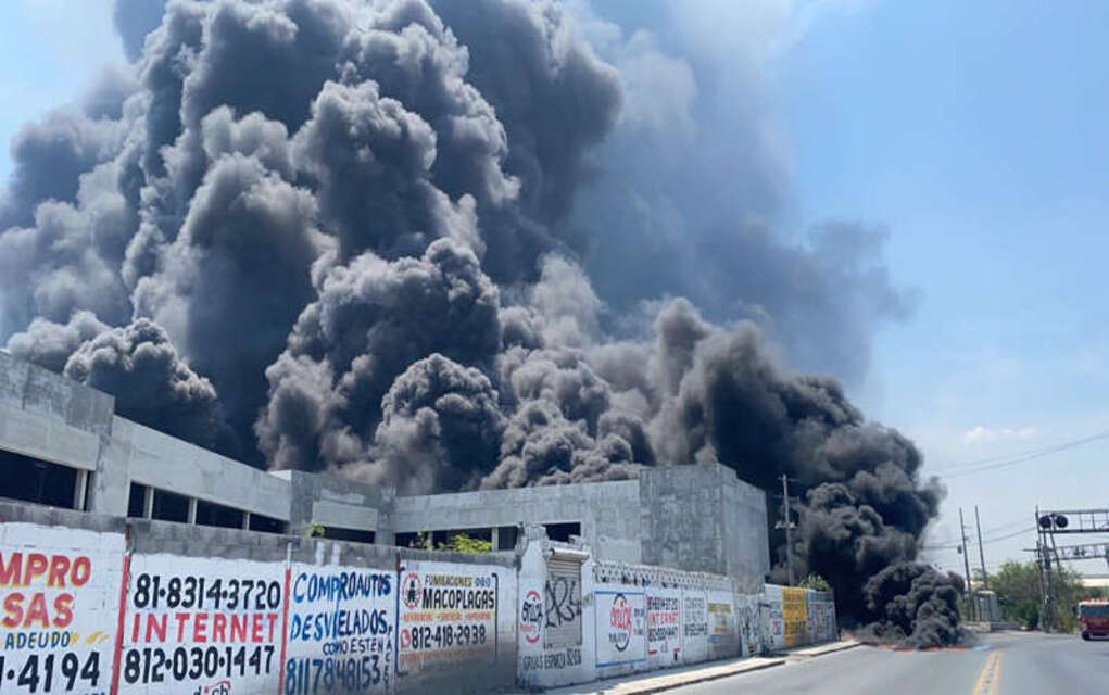 Monterrey, NL.- Un fuerte incendio en una planta de aislantes de Protexa, ubicada en el municipio de Santa Catarina, dejó como saldo cuatro heridos, la evacuación de un hotel y empresas cercanas y una fuga de material para producir asfalto.