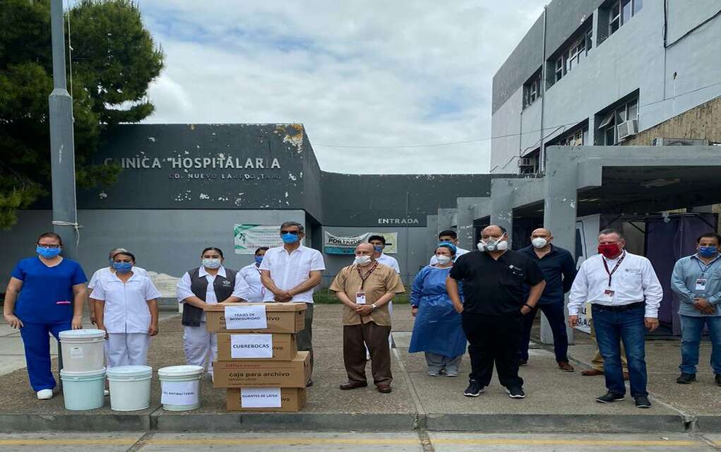 Posteriormente realizó una visita a los hospitales del Instituto de Seguridad y Servicios Sociales de los Trabajadores del Estado, ISSSTE, la unidad 11 del Instituto Mexicano del Seguro Social, IMSS y del Hospital Civil de Nuevo Laredo para llevar insumos médicos y equipo de bioseguridad para el personal hospitalario de las diferentes instituciones de salud.