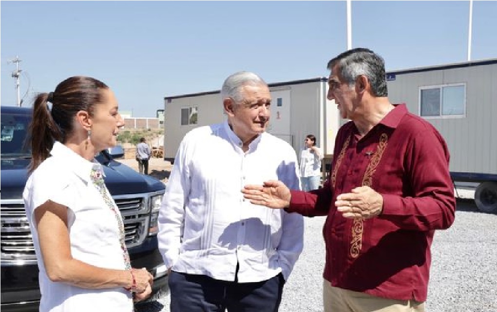López Obrador y Sheinbaum llegaron la noche del viernes a Nuevo Laredo y este sábado recibieron información sobre el avance de esta magna obra de parte del secretario de la Defensa Nacional, Luis Cresencio Sandoval y el director general de Aduanas, André Georges Foullon Van Lissum.
