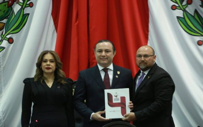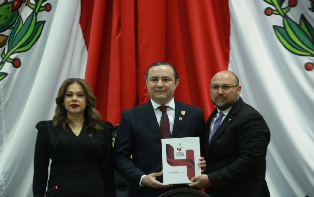 “Un gobierno que trabaja por la seguridad, la paz y el desarrollo con bienestar dentro del estado de derecho; un gobierno que coloca en el centro de su acción a la persona humana”, expresó el representante del titular del Poder Ejecutivo al hacer entrega del documento al presidente de la Mesa Directiva, diputado Sergio Arturo Ojeda Castillo.