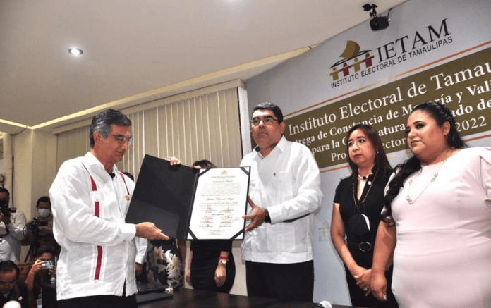 Cd. Victoria, Tam.- El doctor Américo Villarreal Anaya recibió la constancia que lo acredita como Gobernador Electo de Tamaulipas tras obtener 731 mil 383 votos, lo que representa el 51.54 por ciento de los sufragios emitidos en la jornada del 5 de junio.