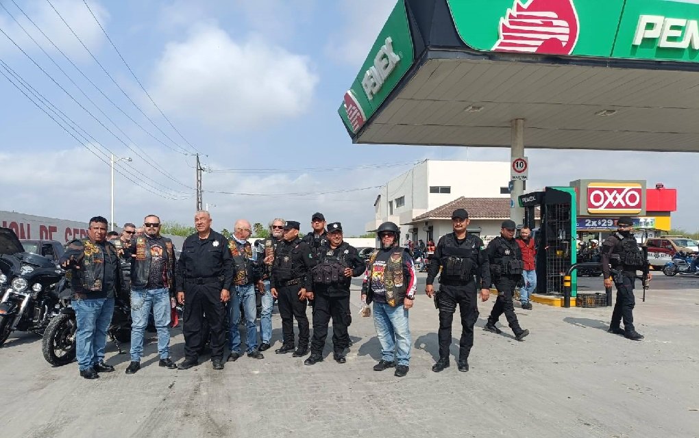 Jiménez, Tamaulipas.– Personal de la Guardia Estatal desplegó un operativo de seguridad para resguardar el paso de una caravana internacional de motociclistas que ingresó al estado con destino a El Salvador.