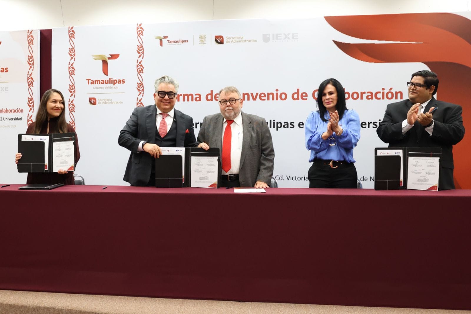 Ciudad Victoria, Tamaulipas. -El Gobierno de Tamaulipas a través de la Secretaría de Administración encabezada por Jesús Lavín Verastegui, firmó un convenio de colaboración con IEXE Universidad, representada por el rector Julio Franco Corzo; en este evento se formaliza la oportunidad para que las y los servidores públicos del estado y su familia obtengan mayor acceso al desarrollo profesional y académico.