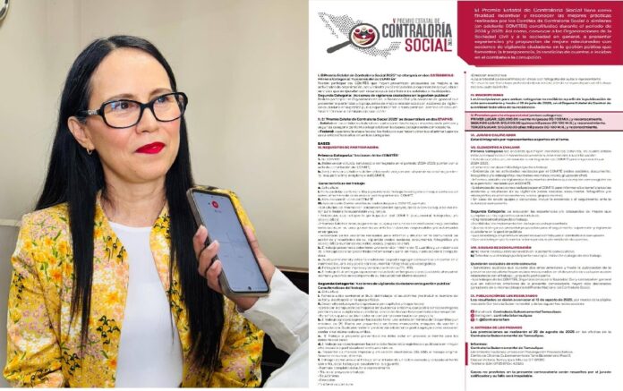 Las características de los trabajos y los elementos a evaluar se pueden consultar en la convocatoria del “V Premio Estatal de Contraloría Social 2025” que se encuentra publicado en las redes sociales de la Contraloría Gubernamental.