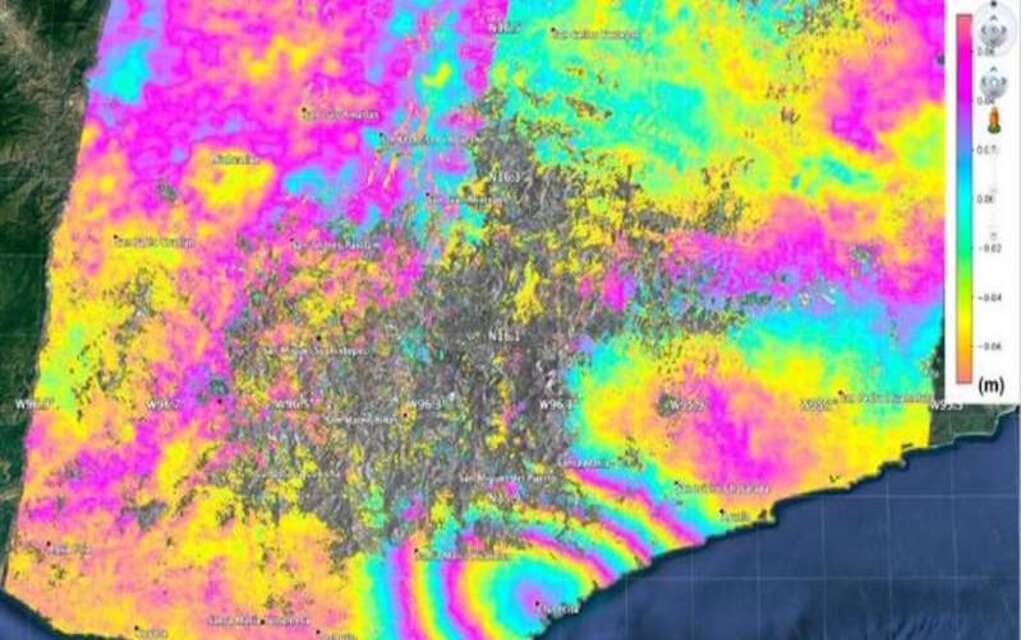 El Programa de Desastres de Ciencias Aplicadas de la Tierra de la NASA compartió un mapa en donde se comparan los datos satelitales del 31 de marzo con los del 23 de junio, día del temblor, en el cual se muestra el desplazamiento de la superficie causado por el terremoto de magnitud 7.4 en Oaxaca. El mapa usa imágenes del satélite japonés JAXA ALOS-2.