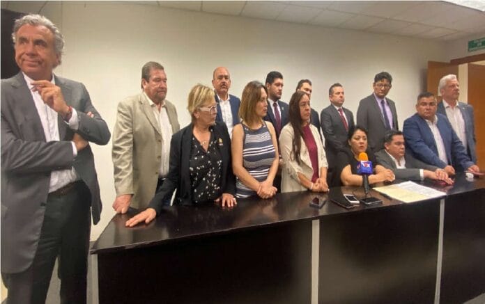 La coordinadora de Morena, Úrsula Salazar, acompañada de toda la fracción panista en rueda de prensa, aseguró que van por la controversia constitucional.