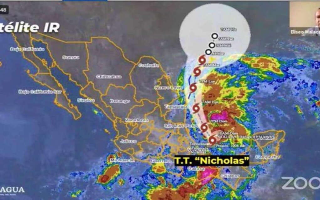 La Comisión Nacional del Agua (Conagua) alertó por la presencia de la tormenta tropical “Nicholas” que afectará con fuertes lluvias la región del Golfo de México, particularmente Tabasco, Veracruz y el sur de Tamaulipas, que ya desde esta mañana resienten el temporal debido a que el fenómeno se ubica a 200 kilómetros al noreste del puerto de Veracruz con vientos de 65 kilómetros por hora y se mueve hacia el noroeste a 20 kilómetros por hora.