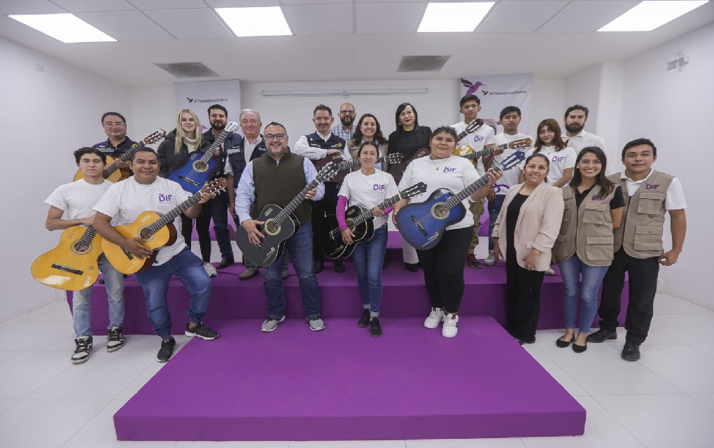 Ciudad Victoria, Tamaulipas. Para impulsar el arte y la cultura a través del aprendizaje musical a niñas, niños, adolescentes y jóvenes de los polígonos del programa “Lazos del Bienestar”, el Sistema DIF Tamaulipas que preside la doctora María de Villarreal, recibió un donativo de instrumentos musicales consistentes en guitarras acústicas por parte de las autoridades del Club Rotario Victoria de Escandón.