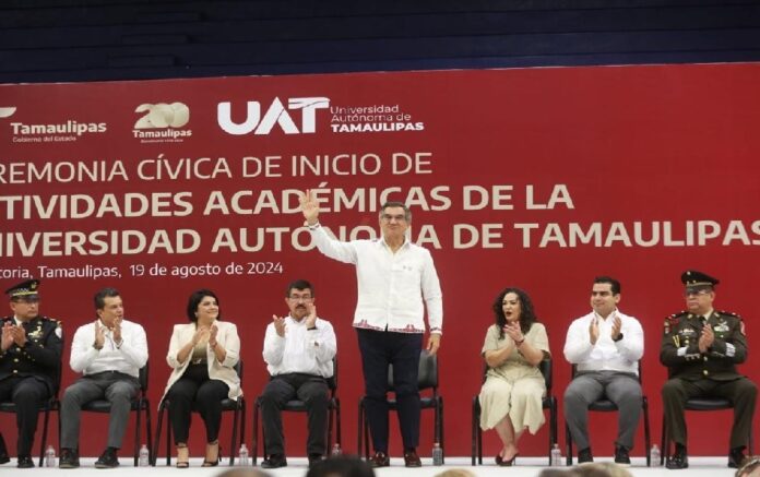 Al asistir a la ceremonia cívica de inicio de actividades académicas de la UAT, junto al rector Dámaso Anaya Alvarado, el gobernador refrendó todo su apoyo a la Máxima Casa de Estudios para lograr mayores oportunidades de desarrollo.