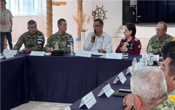 Durante la reunión de este sábado representantes de la Defensa Nacional, Marina, Guardia Nacional, Pemex, CFE, SICT y dependencias estales dieron a conocer que se mantiene el despliegue operativo llevando a cabo recorridos en las zonas de riesgo, la atención a los albergues y refugios temporales habilitados y se establecen zonas prioritarias y centros de abasto para que la ayuda llegue a quien lo necesita sin importar los obstáculos y las distancias.