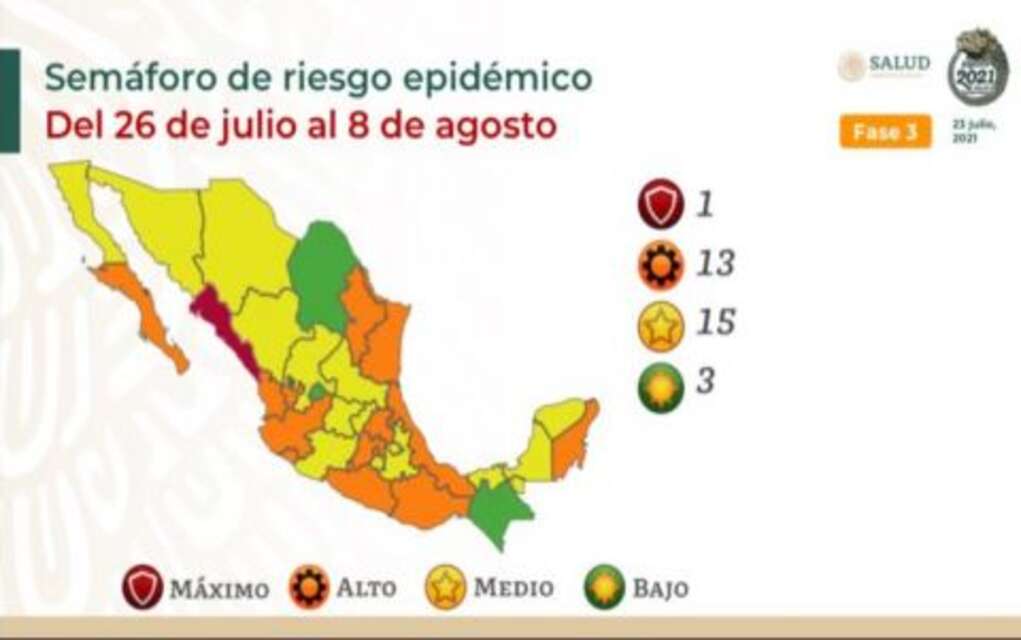 No puedes perderte: Maestra le pone ‘une’ de calificación a alumna por usar lenguaje inclusivo en examen La misma secretaría indicó por medio de sus redes sociales que para las próximas dos semanas, que van del lunes 26 de julio al domingo 8 de agosto, hay un estado en color rojo: Sinaloa