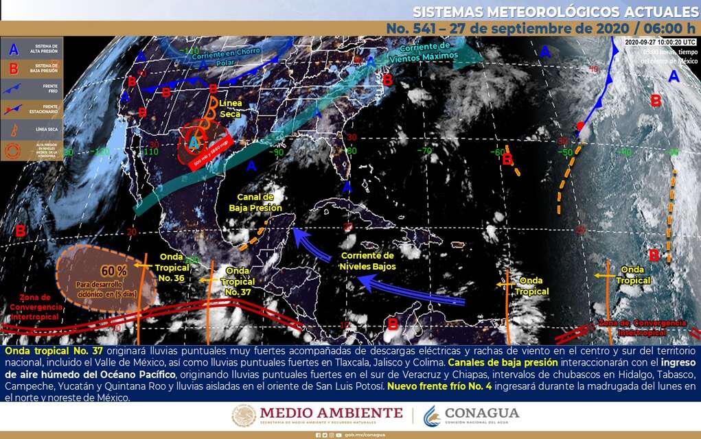 En el sur de la entidad se prevé a partir del lunes una temperatura máxima de 36 grados y mínima de 14 con rachas de viento que podrían superar los 70 kilómetros por hora principalmente en zonas costeras así como alta probabilidad de lluvia.