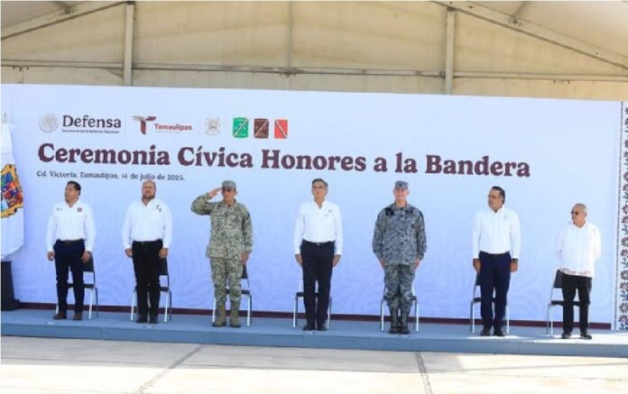 En la ceremonia cívica también estuvieron presentes: Jesús Amparán Hernández, coordinador estatal de la Guardia Nacional en Tamaulipas; Héctor Joel Villegas González, secretario general de Gobierno; Hernán De la Garza Tamez, presidente del Supremo Tribunal de Justicia; Francisco Adrián Cruz Martínez, presidente de la Diputación Permanente del Congreso del Estado, y Alex Melgarejo Torres, subsecretario de Seguridad Pública, además de servidores públicos e integrantes de la Mesa de Seguridad.