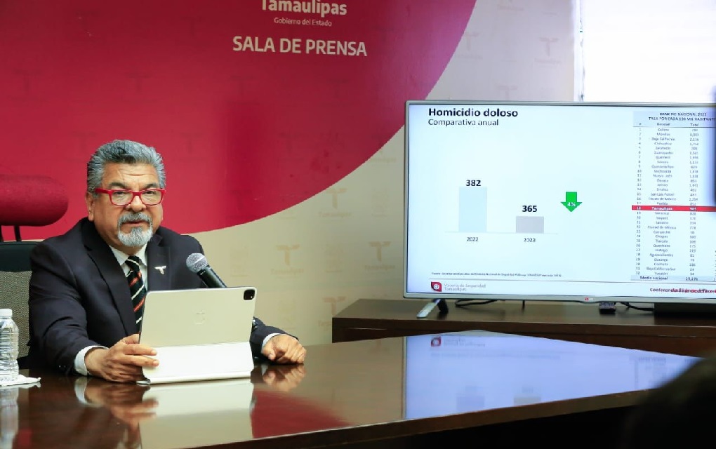 Ciudad Victoria, Tamaulipas.- Durante el año 2023, Tamaulipas registró la incidencia más baja desde el 2015 en los delitos de homicidio doloso, secuestro, robo a casa habitación y robo a transeúnte, informó el vocero de Seguridad del Estado, Jorge Cuéllar Montoya, quien agregó que también en seis de los ocho delitos de alto impacto, Tamaulipas se ubicó por debajo de la media nacional y, en seis, se presentó un decremento con respecto al 2022.