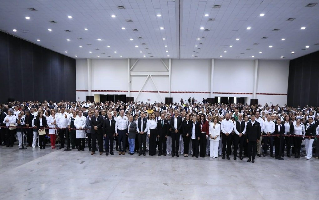 Al presidir la ceremonia de entrega de medallas por años de servicio a trabajadoras y trabajadores de las Secretarías de Salud y de la Coordinación Estatal del IMSS-Bienestar, el gobernador hizo un reconocimiento a quienes, dijo, son sus compañeros y compañeras de gremio.