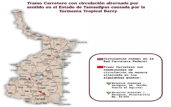 Asimismo, se sugirió a los automovilistas considerar rutas alternas si se viaja de Tampico a Victoria: González – Mante – Xicoténcatl – Zaragoza – Ciudad Victoria.