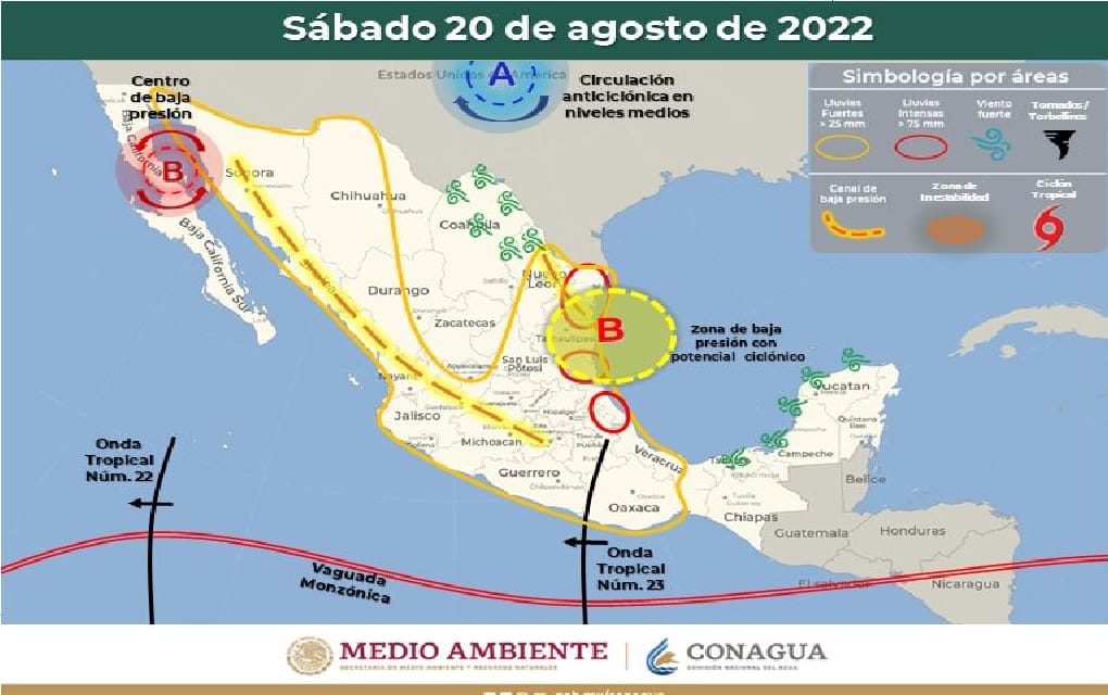 Y aquí este fenómeno natural, que podría convertirse en tormenta tropical sobre las aguas del Golfo de México, ocasionaría la caída de 7.5 a 15 centímetros de agua sobre todo en las regiones de Matamoros, Reynosa, San Fernando, Soto La Marina y González.