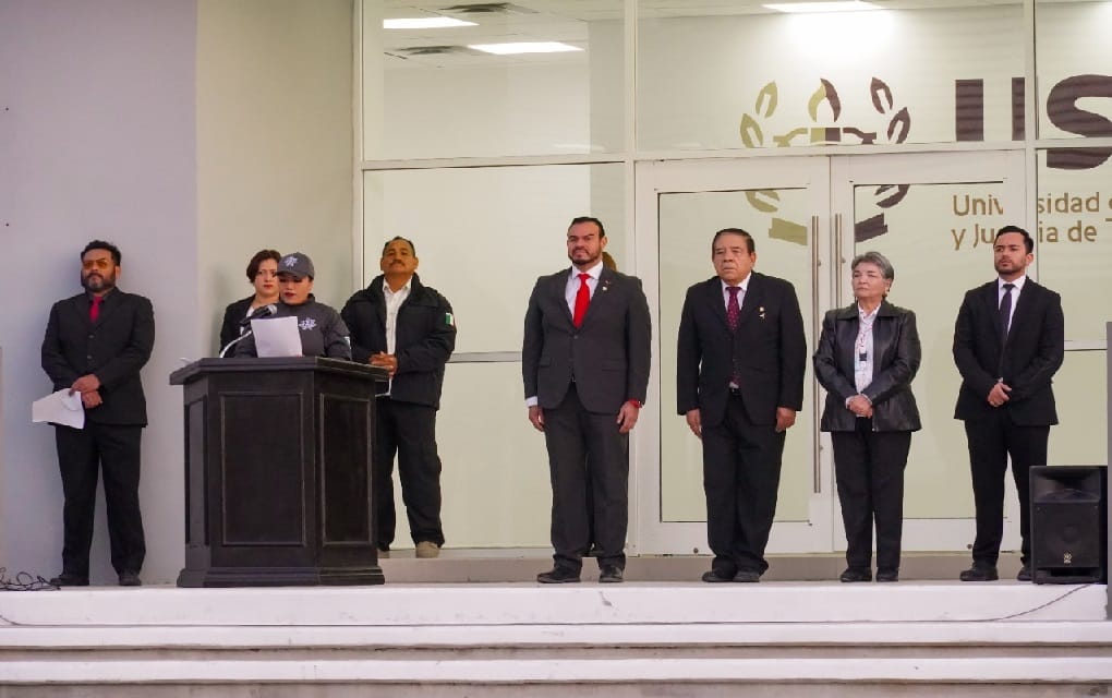 Al tomar protesta a los nuevos guías técnicos, junto con el rector de la USJT, Willy Zúñiga Castillo, el titular de la SSP reconoció la labor de la institución, la cual imparte una diversidad de cursos a elementos en activo, además de la modalidad escolarizada.