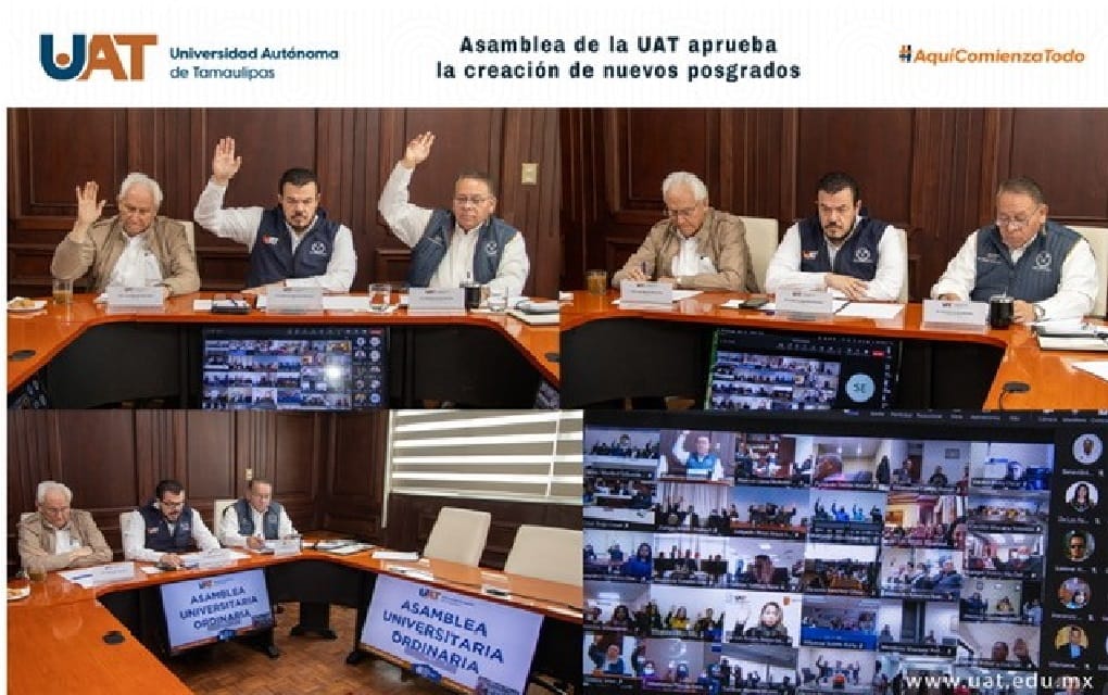 Ciudad Victoria, Tam.; 17 de febrero de 2023.- La Asamblea de la Universidad Autónoma de Tamaulipas (UAT) aprobó por unanimidad la creación de nuevos programas de posgrado, en atención a la demanda de esquemas educativos de alta calidad que requiere la sociedad.