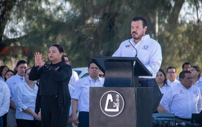 En su mensaje a la comunidad universitaria, el rector destacó la importancia de preservar el respeto a los símbolos patrios, y reiteró el compromiso de la UAT por engrandecer a la nación a través de la educación.