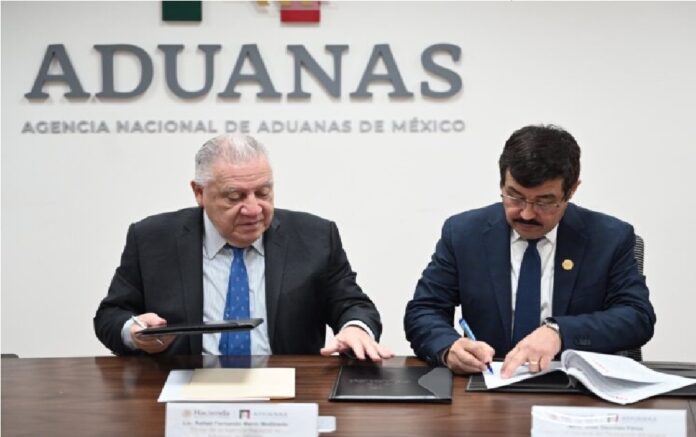 Ciudad de México (4 de septiembre de 2025).- El rector de la Universidad Autónoma de Tamaulipas (UAT), Dámaso Anaya Alvarado, y el titular de la Agencia Nacional de Aduanas de México (ANAM), Rafael Marín Mollinedo, firmaron un convenio de colaboración que permitirá a la casa de estudios fortalecer la formación aduanera y técnica de las nuevas generaciones y consolidar su papel como puente entre la educación superior y los sectores estratégicos del país.