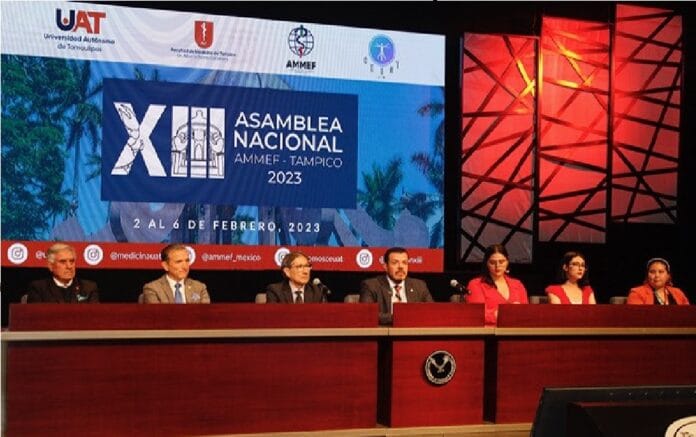 Tampico, Tam., 3 de febrero de 2023.- El C. P. Guillermo Mendoza Cavazos, rector de la Universidad Autónoma de Tamaulipas (UAT), presidió la ceremonia de inauguración de la XIII Asamblea Nacional de la Asociación Mexicana de Médicos en Formación A. C. (AMMEF), la organización estudiantil en su tipo más grande y representativa del país.