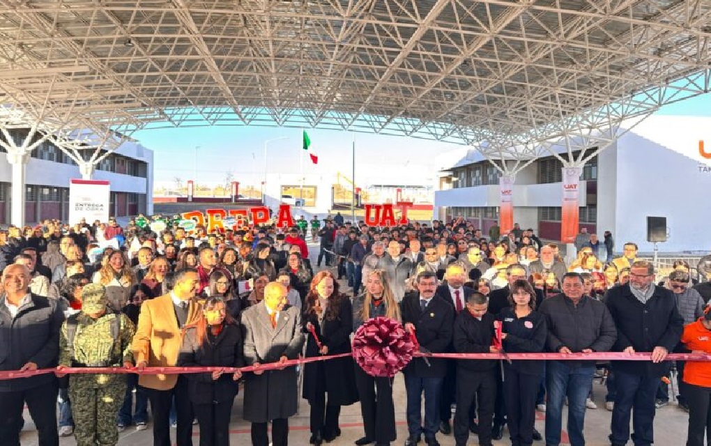 La entrega, realizada en el marco de apertura del ciclo escolar 2026-1 de la UAT, incluyó la techumbre monumental, diseñada para proteger a los estudiantes de las inclemencias del tiempo durante sus actividades al aire libre; así como el estacionamiento, destinado a mejorar la movilidad y el orden dentro del plantel.