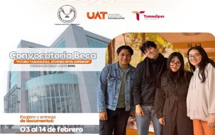 Ciudad Victoria, 04 de febrero.- La Universidad Autónoma de Tamaulipas (UAT) hace un llamado a su comunidad estudiantil a participar en la convocatoria de la Beca “Futuro Tamaulipas, Jóvenes de Nivel Superior” para el periodo febrero-junio 2025, emitida por el Gobierno del Estado a través de la Secretaría de Educación y el Instituto Tamaulipeco de Becas, Estímulos y Créditos Educativos (ITABEC).