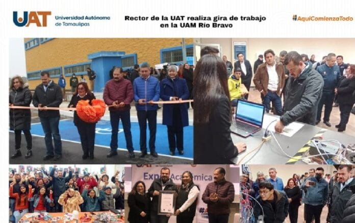 El C. P. Guillermo Mendoza Cavazos, rector de la Universidad Autónoma de Tamaulipas (UAT), visitó la Unidad Académica Multidisciplinaria Río Bravo (UAMRB), en donde puso en marcha una serie de actividades educativas, tecnológicas y de vinculación, además de espacios para el mejoramiento de la institución.