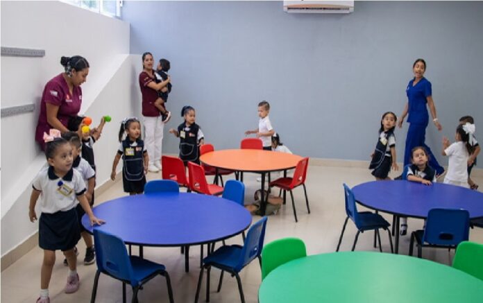 Por último, informó que los trabajos de infraestructura y mejoramiento continúan en curso, pues se han realizado remodelaciones en la sala de lactantes y se han adecuado instalaciones con base en las normas del Instituto Mexicano del Seguro Social (IMSS).