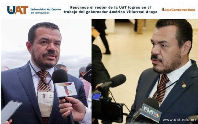Ciudad Victoria, Tam.; 15 de marzo de 2023.- El C. P. Guillermo Mendoza Cavazos, rector de la Universidad Autónoma de Tamaulipas (UAT), reconoció el trabajo del gobernador Américo Villarreal Anaya, gracias al cual la entidad ha visto mejoras en rubros importantes para el bienestar de las familias tamaulipecas.