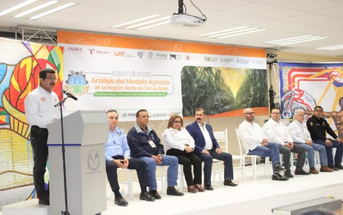 Más adelante, encabezó la inauguración del Foro Técnico de Análisis del Modelo Agrícola de la Región Norte de Tamaulipas, que reunió a expertos, productores, investigadores y autoridades estatales y de la región para analizar estrategias que fortalezcan el desarrollo agrícola regional bajo un enfoque integral.