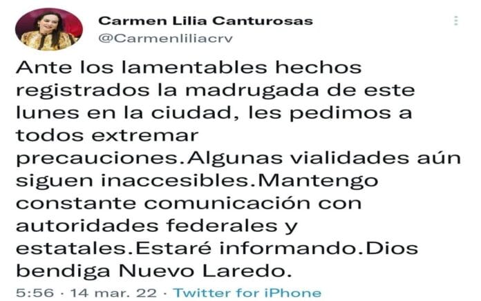 Ante los hechos violentos que se suscitan en la frontera tamaulipeca, el consulado de Estados Unidos en Nuevo Laredo emitió una alerta a ciudadanos estadunidenses que residen o transitan por la ciudad, a evitar el área y de necesitarlo buscar un refugio.