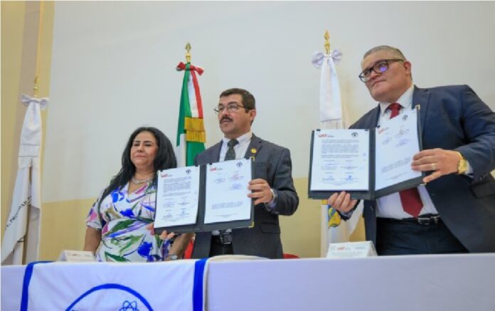En el inicio de sus actividades, el rector suscribió un acuerdo de colaboración con el presidente magistrado del TRIELTAM, René Osiris Sánchez Rivas, acompañado por la directora de la FADYCS, Elda Ruth de los Reyes Villarreal.