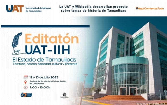 Ciudad Victoria, Tam.; 8 de julio de 2023.- Durante los días 12 y 13 de julio de este año se llevará a cabo la primera edición del Editatón Educativo, un proyecto que realiza la Universidad Autónoma de Tamaulipas (UAT)por medio del Instituto de Investigaciones Históricas (IIH)en coordinación con Wikimedia México, organización matriz en nuestro país de la gran enciclopedia libre Wikipedia.