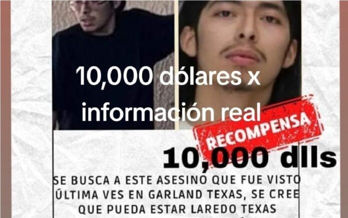 Laredo, Tx.. La policía de Garland, Texas se encuentra ofreciendo una recompensa de 10 dólares de 10 mil dólares para quien proporcione información para dar con el paradero de Yordy Jonathan Muñoz Martínez, quien se encuentra huyendo tras ser acusado de un asesinato de en esa ciudad y se teme que se haya ocultado en Laredo o en ciudades mexicanas cercanas a la frontera como Acuña, Piedras Negras, Torreón y hasta San Pedro, Coahuila.