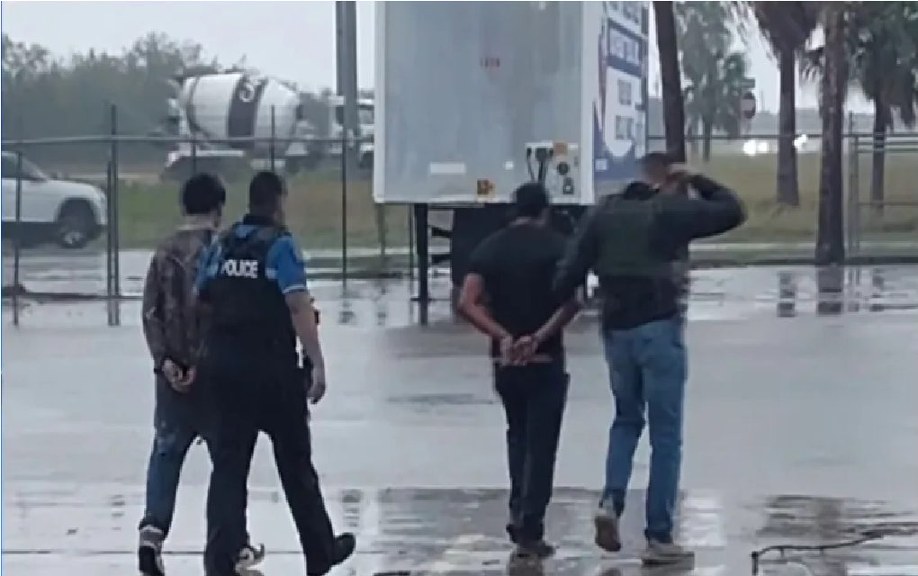 De acuerdo con las autoridades, el conductor de una camioneta Chevy Tahoe color beige detuvo el vehículo en la zona, momento en el que varios de los ocupantes descendieron y corrieron hacia una bodega perteneciente a un negocio de remolques utilitarios. Los oficiales lograron detener a un total de 15 personas.