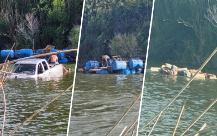 Camioneta termina sumergida en el río Grande tras fallido intento de contrabando de drogas