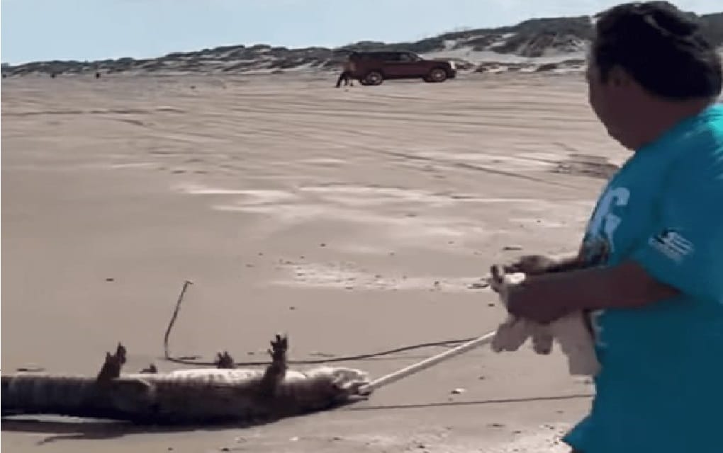 Isla del Padre, Tx,.- Sorpresa y preocupación causó en turistas y paseantes, la presencia de un caimán en la playa de la Isla del Padre.