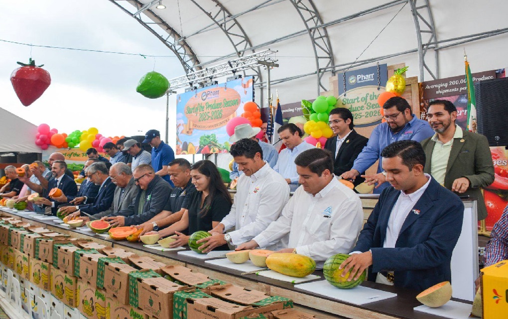 Durante el evento, Eliseo Camacho Nieto, subsecretario de Desarrollo Agrícola, quien asistió en representación del titular de la dependencia estatal, Antonio Varela Flores, destacó la trascendental relevancia del cruce de alimentos perecederos en este punto fronterizo, donde diariamente más de 6,000 camiones transportan productos frescos, demostrando así que el Puente Internacional de Pharr es una arteria vital para el comercio agroalimentario binacional.
